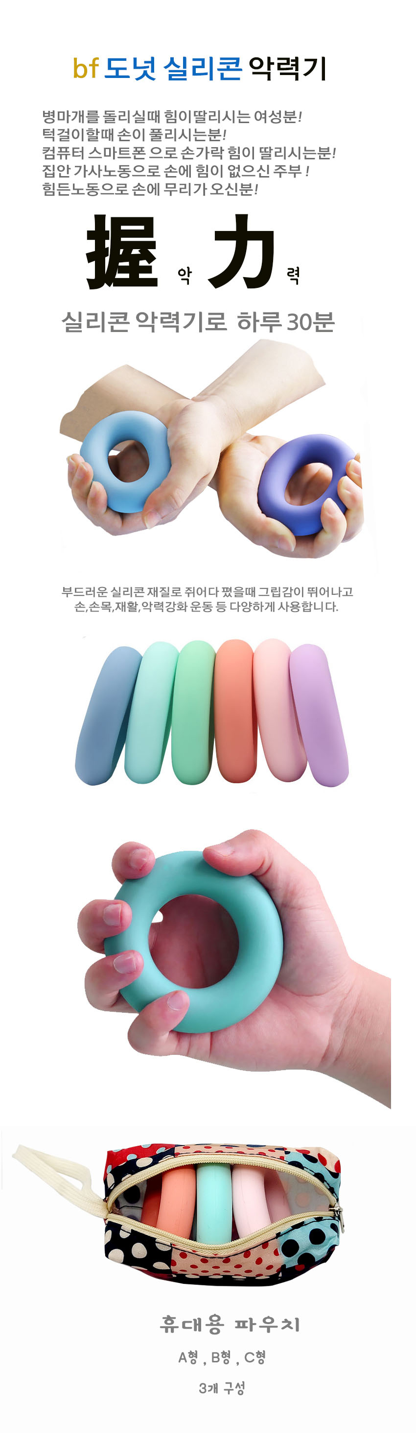 실리콘 도넛악력기 완력기 선물용 파우치가방 경찰 소방관 공무원시험 이미지/