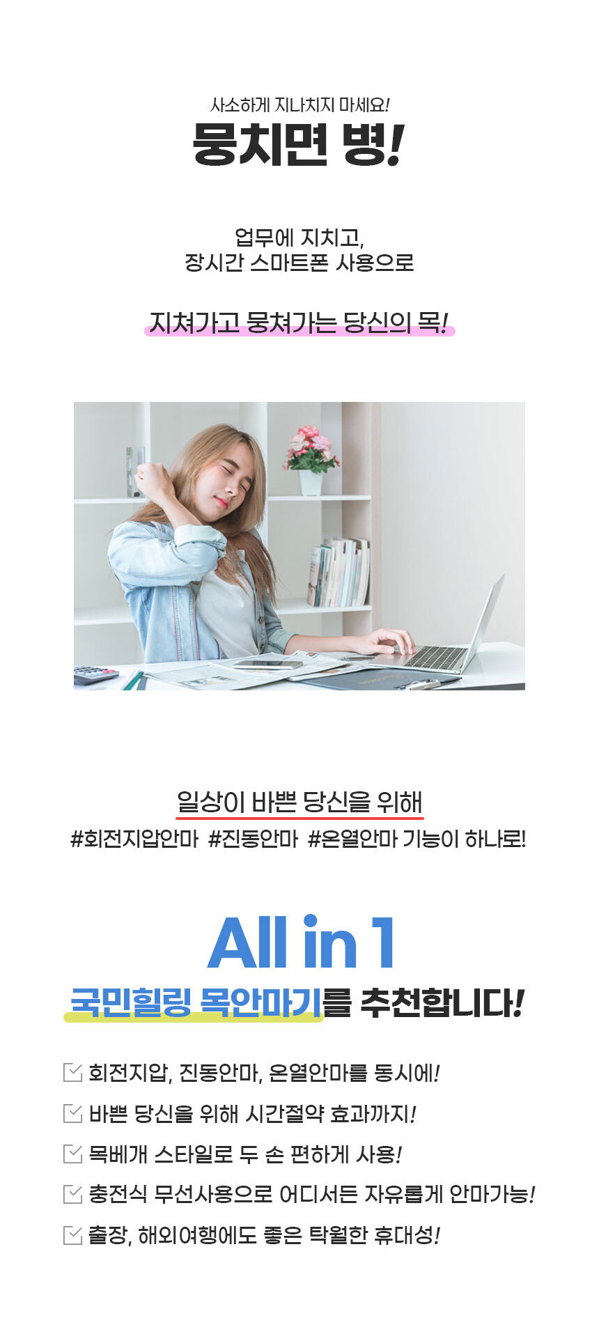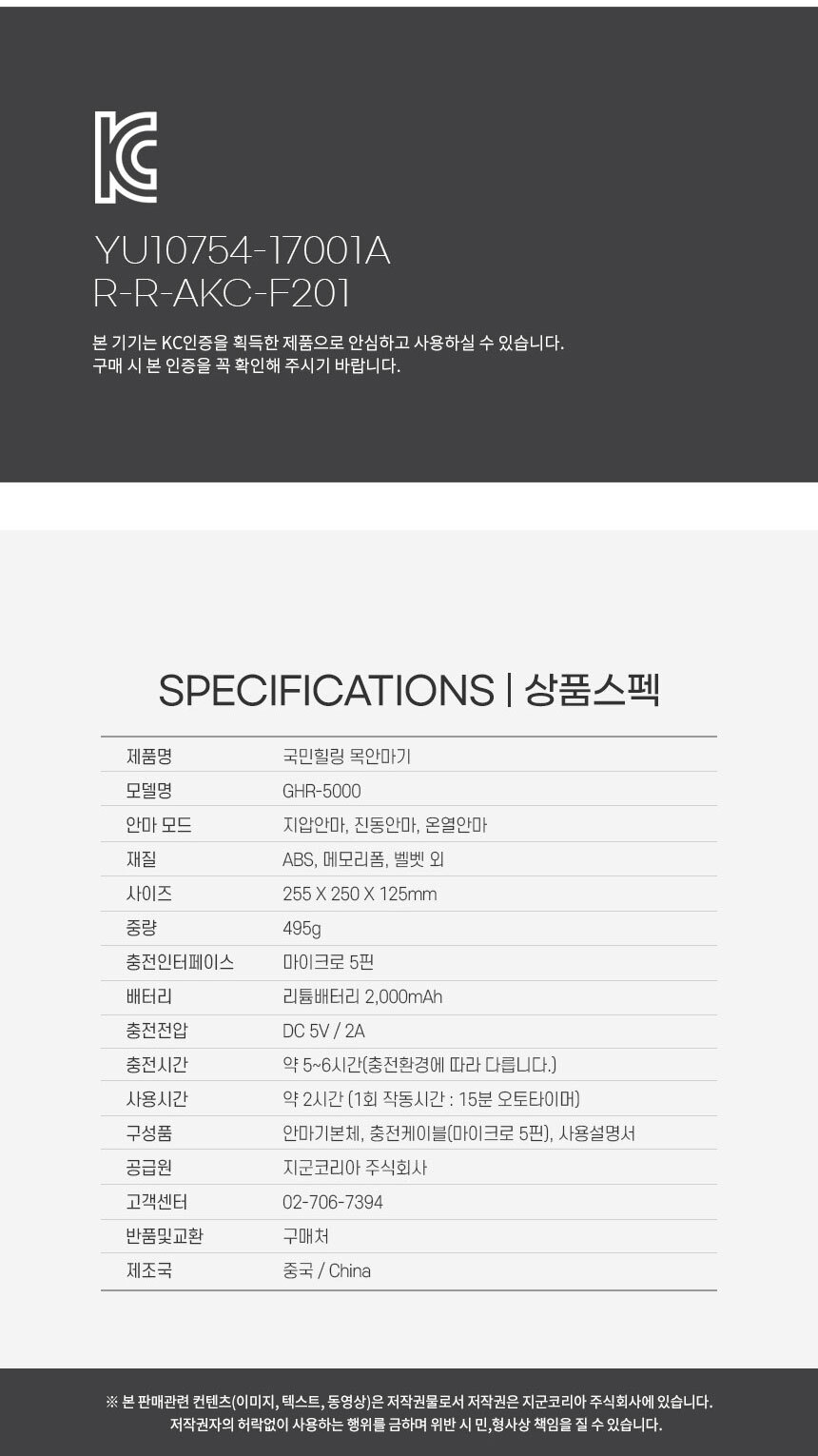 지군 국민힐링 목안마기 진동 지압 온열 GHR-5000 선물용 목마사지기 이미지/