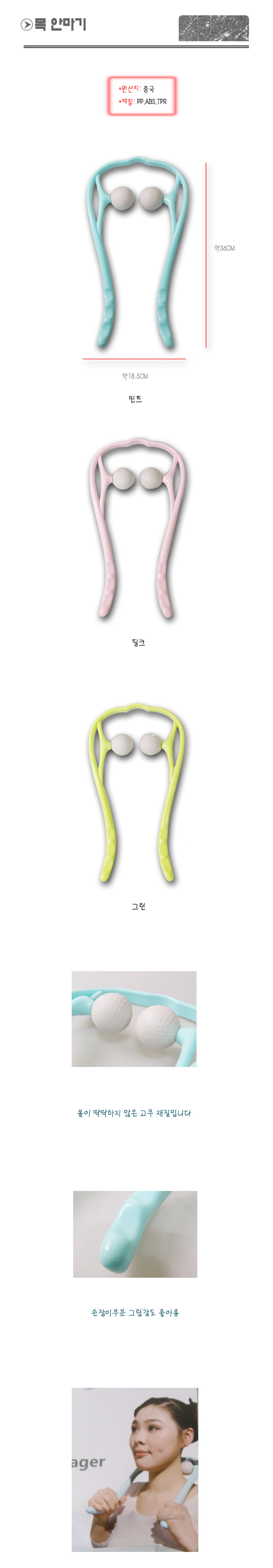 세가지 색상 그립감 좋은 목 안마기