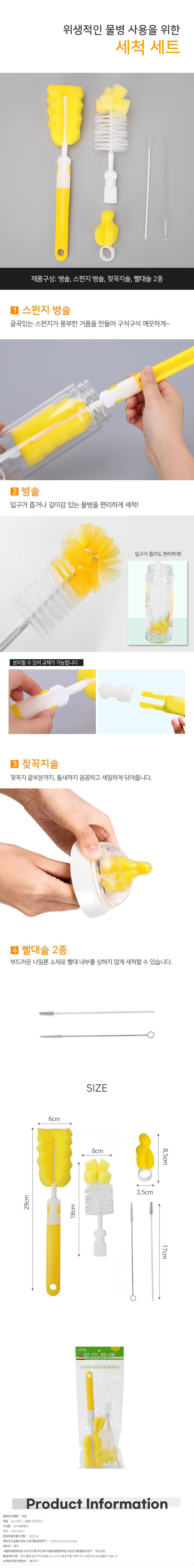 회전형 젖병 세척 스펀지 병솔 브러쉬 세트 (5종)