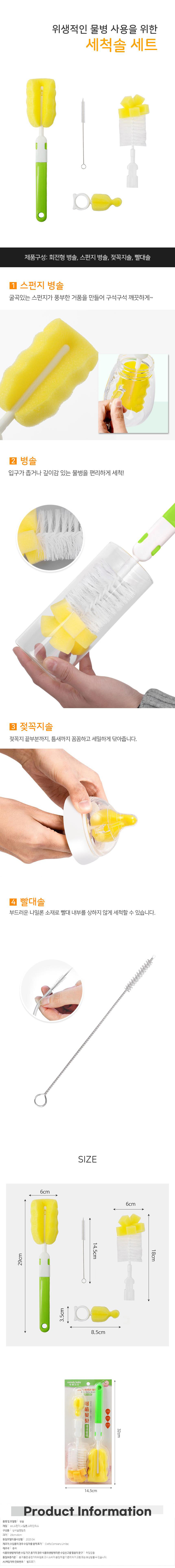 스펀지헤드 세척 병솔 4종세트 보틀브러쉬 다용도솔