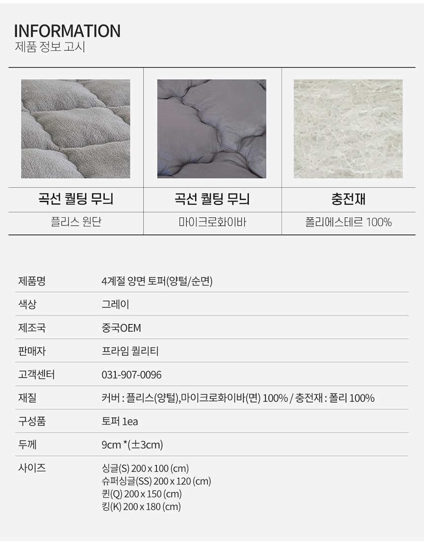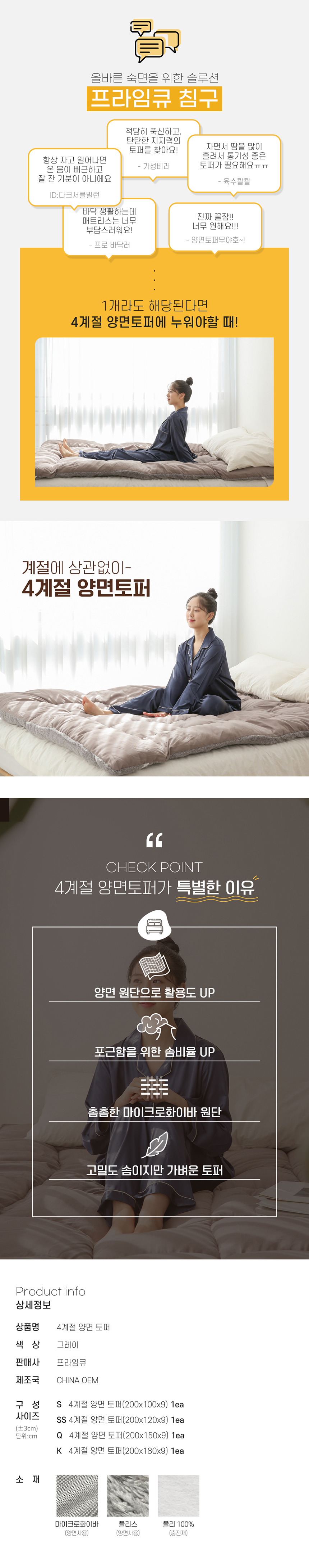 두껍고 푹신한 사계절 양면 토퍼 (4 SIZE) 양면 면 이미지/
