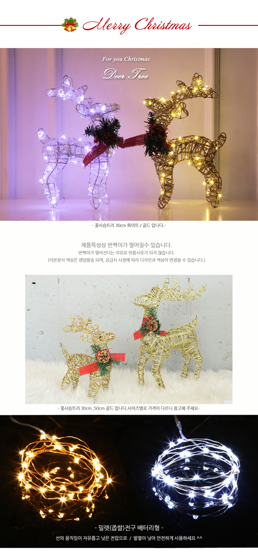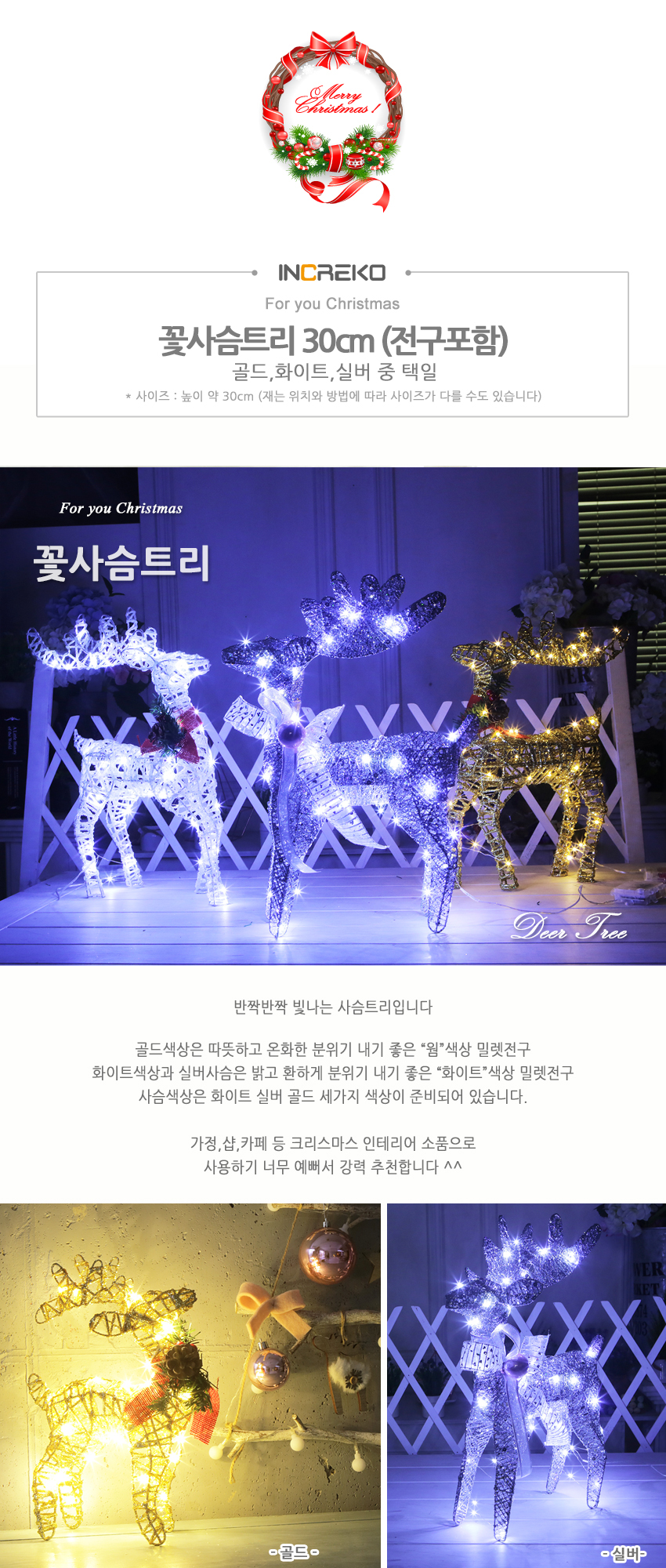 꽃사슴트리 30cm화이트(전구포함) 크리스마스 사슴