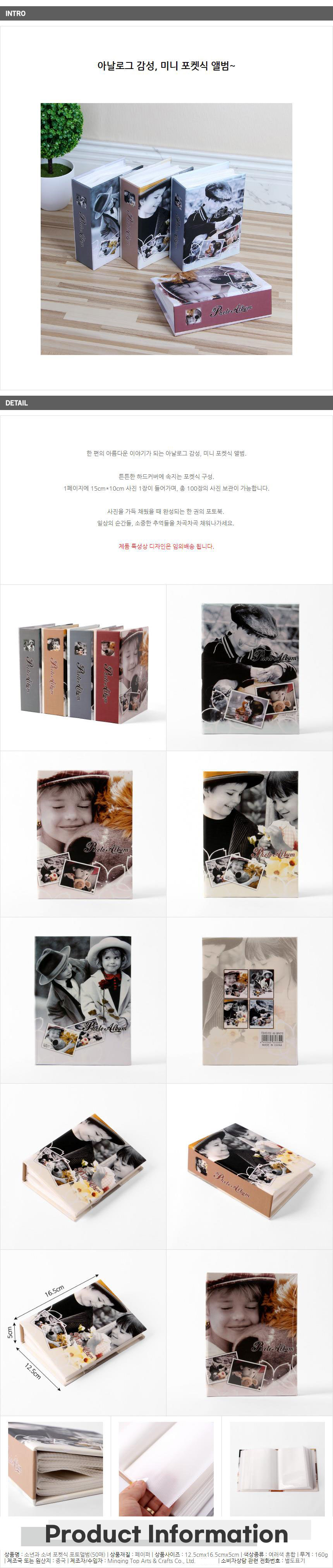 클래식 소년소녀 포켓 포토앨범 50매-색상랜덤 포토북