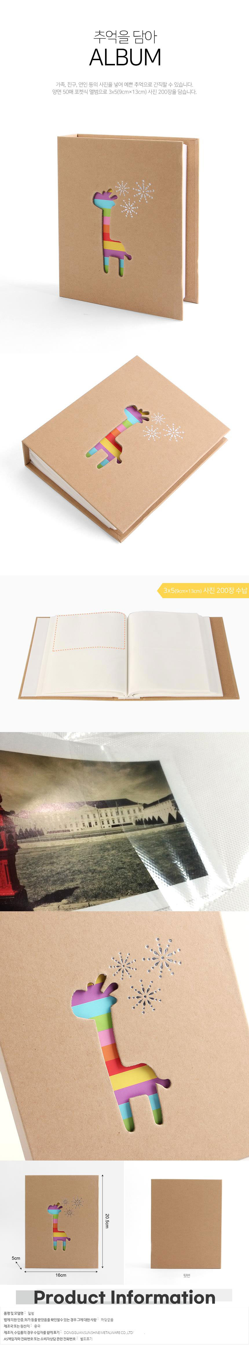 양면포켓 레인보우 기린앨범 3x5 50매 사진정리 이미지/