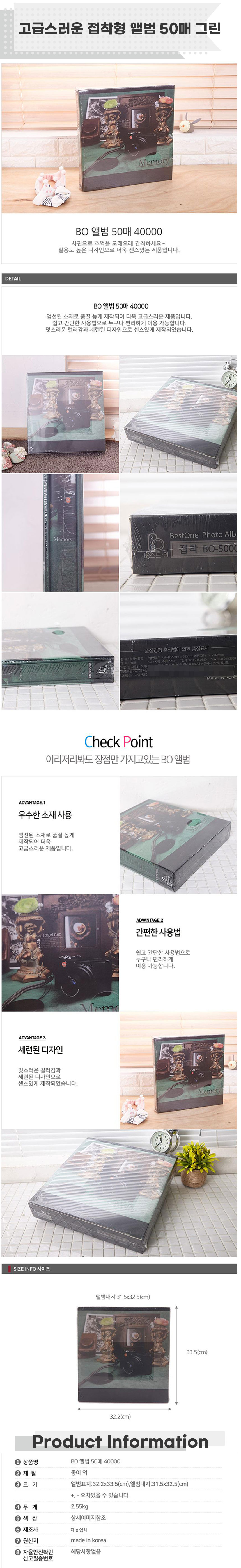 고급스러운 접착형 앨범 50매 그린 아기앨범 사진정리