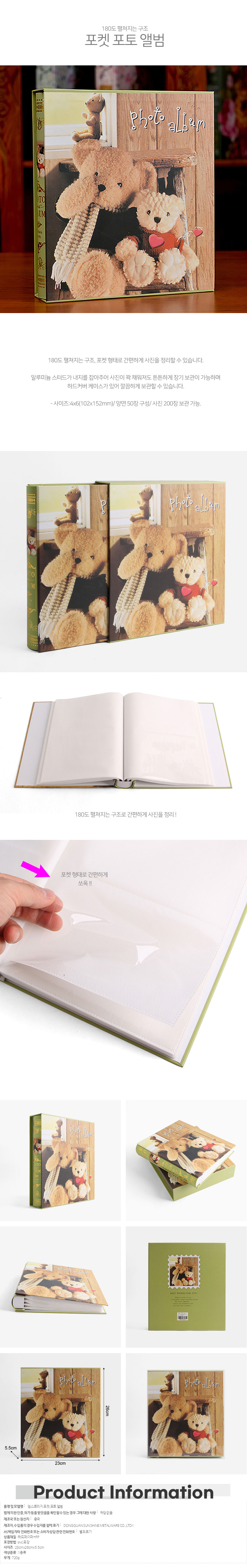 테디베어 포켓 포토앨범 50매 그린x2개 반투명화일 이미지/