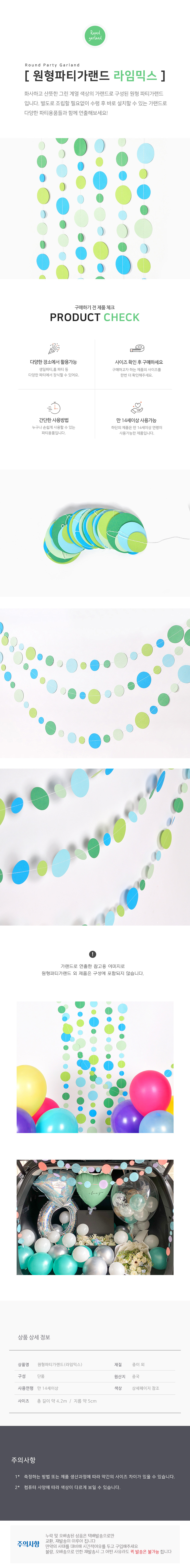 • 품명 및 모델명원형파티가랜드(라임믹스)