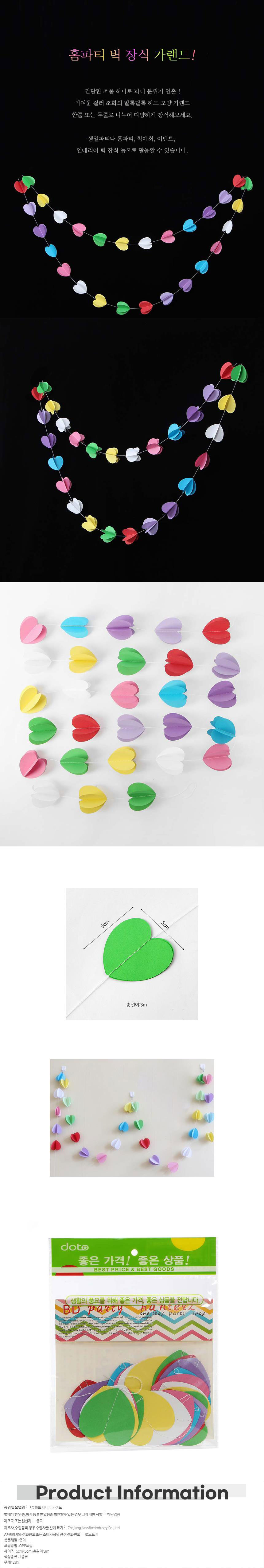 생일파티 장식 입체 하트 페이퍼 가랜드 생일파티용품