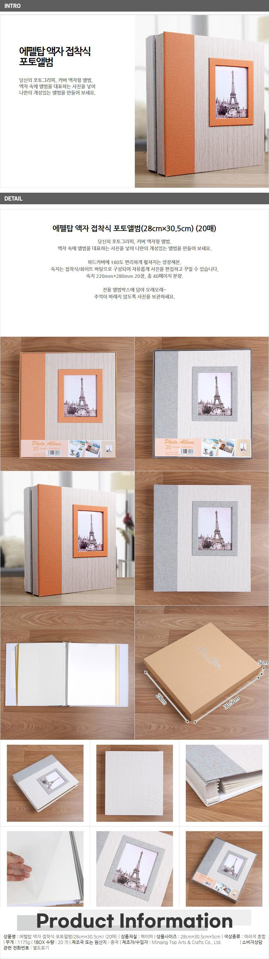 클래식 에펠탑 접착식 포토앨범 20매-색상랜덤 사진첩 이미지/