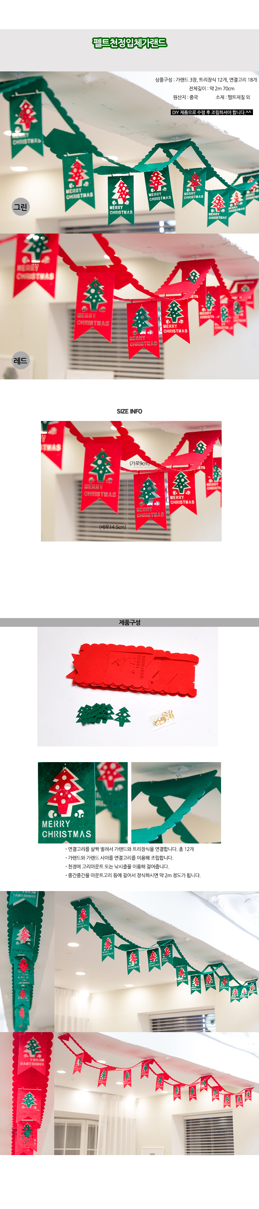 <상품명 : (2개묶음)크리스마스펠트 천정입체 크리스마스 가랜드>