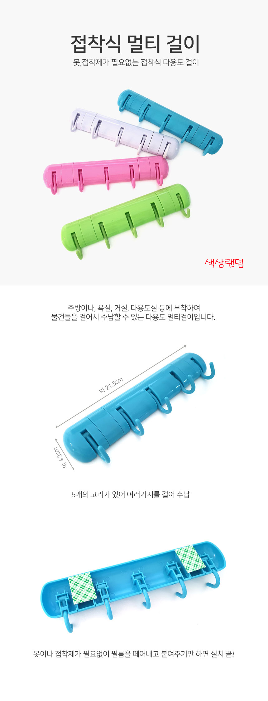 부착식 5후크/ 다용도 주방 욕실고리/ 현관차키걸이 이미지/