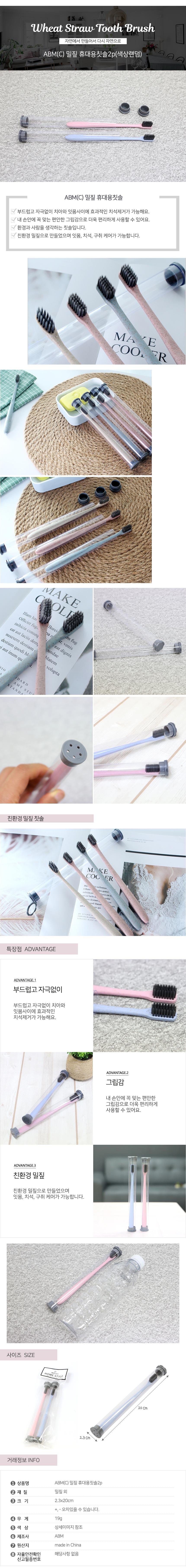 칫솔 밀짚 휴대용칫솔 구강용품 미세모칫솔 2p