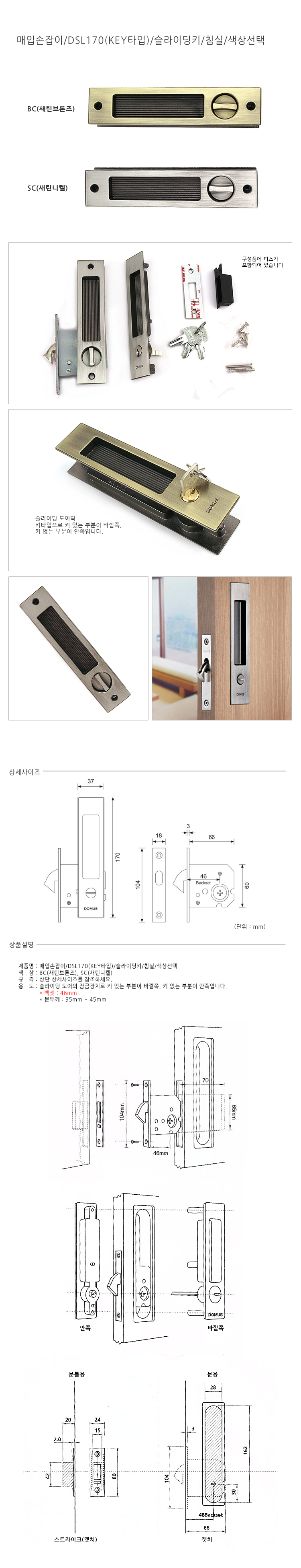 매입손잡이 DSL170 침실 BC 도무스 현관방문 미닫이문