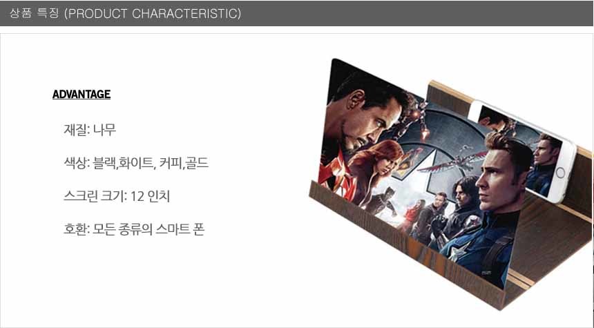 폰확대기 12인치 나무브래킷 거치대 돋보기 접이식