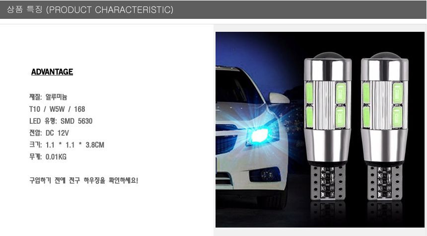 T10 LED 전구 실내등 주차 번호판 12V 트렁크등 미등
