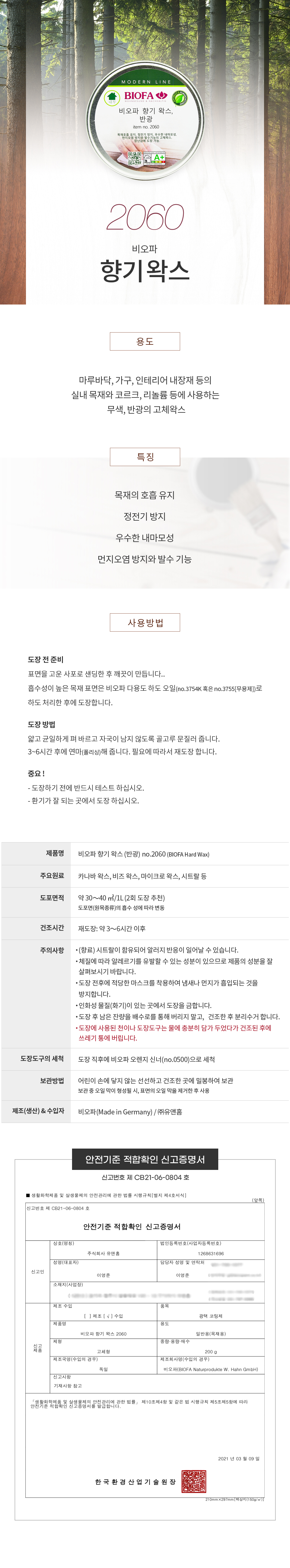 천연가구왁스 2060 200ml 비오파 이미지/