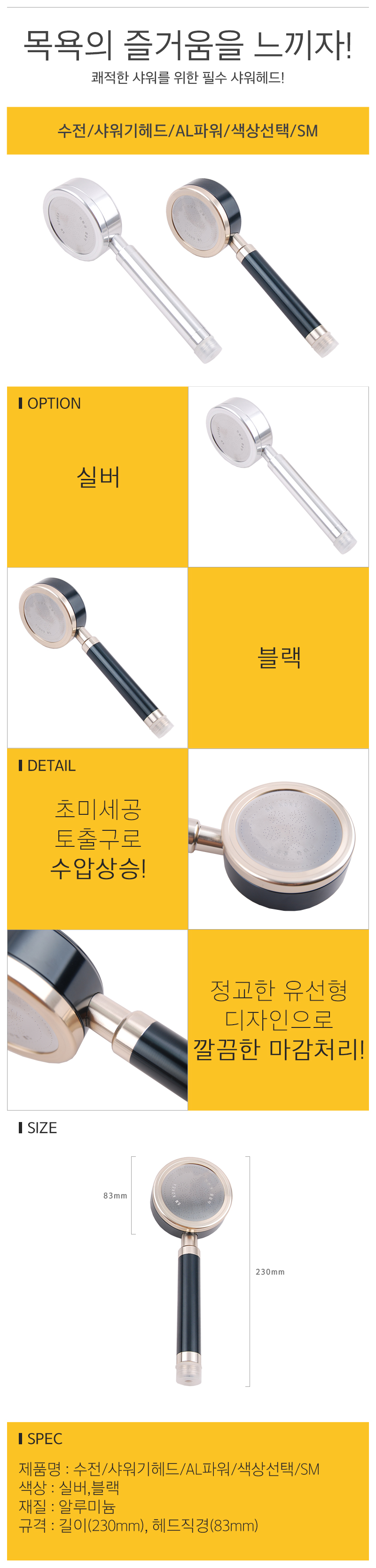 수전 샤워기헤드 AL파워 블랙 SM