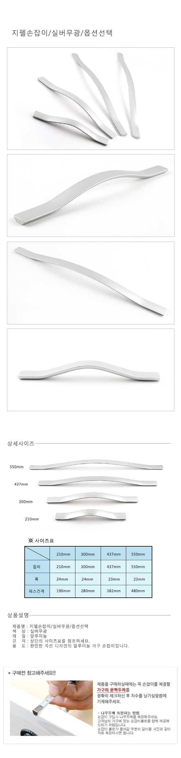 지펠손잡이 300mm 실버무광 이미지/