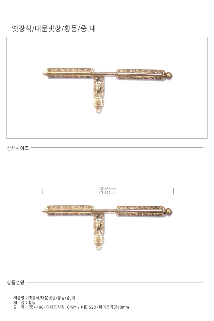 옛장식 대문빗장 황동 520*18파이 대 2-15 이미지/