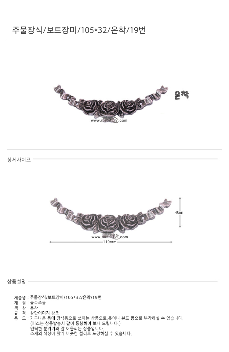주물장식 보트장미 105*32 은착 19번