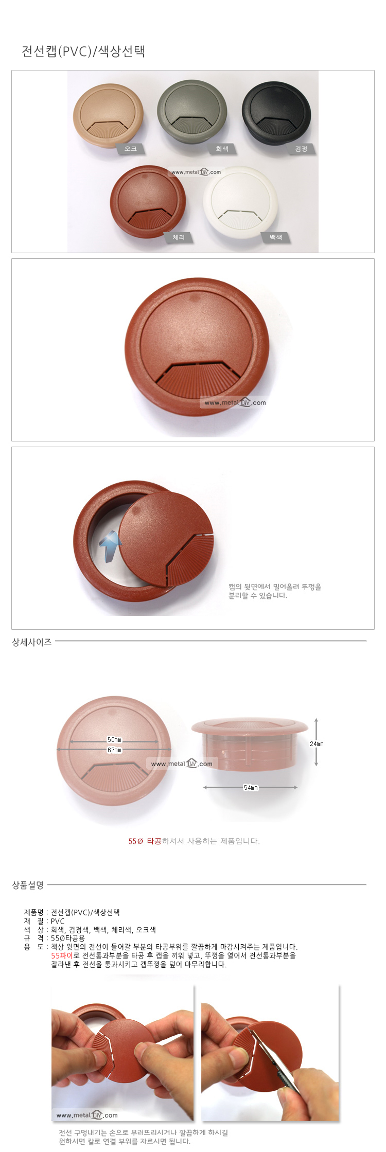 전선캡 백색 55파이 이미지/