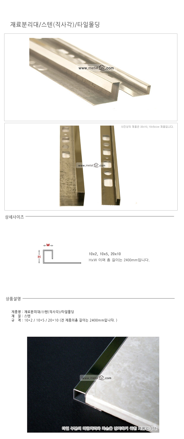 재료분리대 스텐 사각 20x10x2400 이미지/