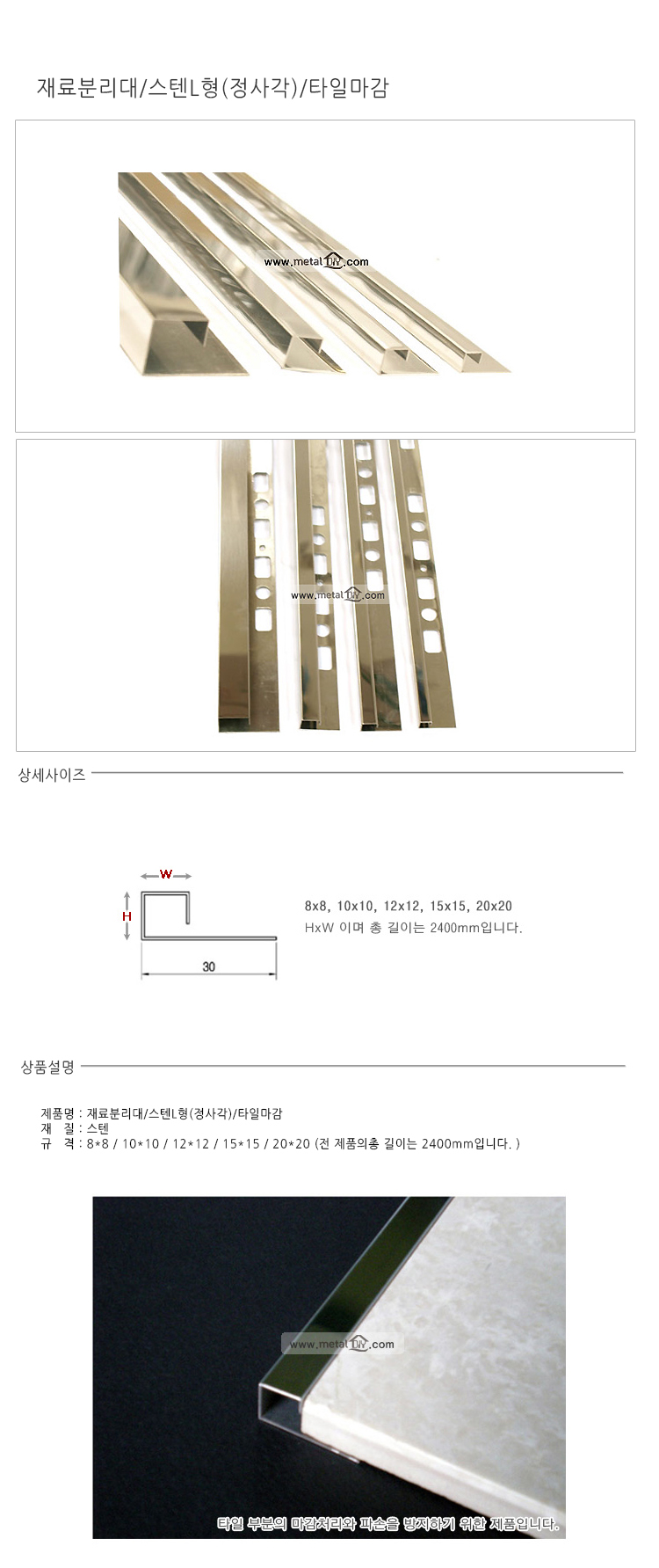 재료분리대 스텐 사각 10x10x2400 이미지/