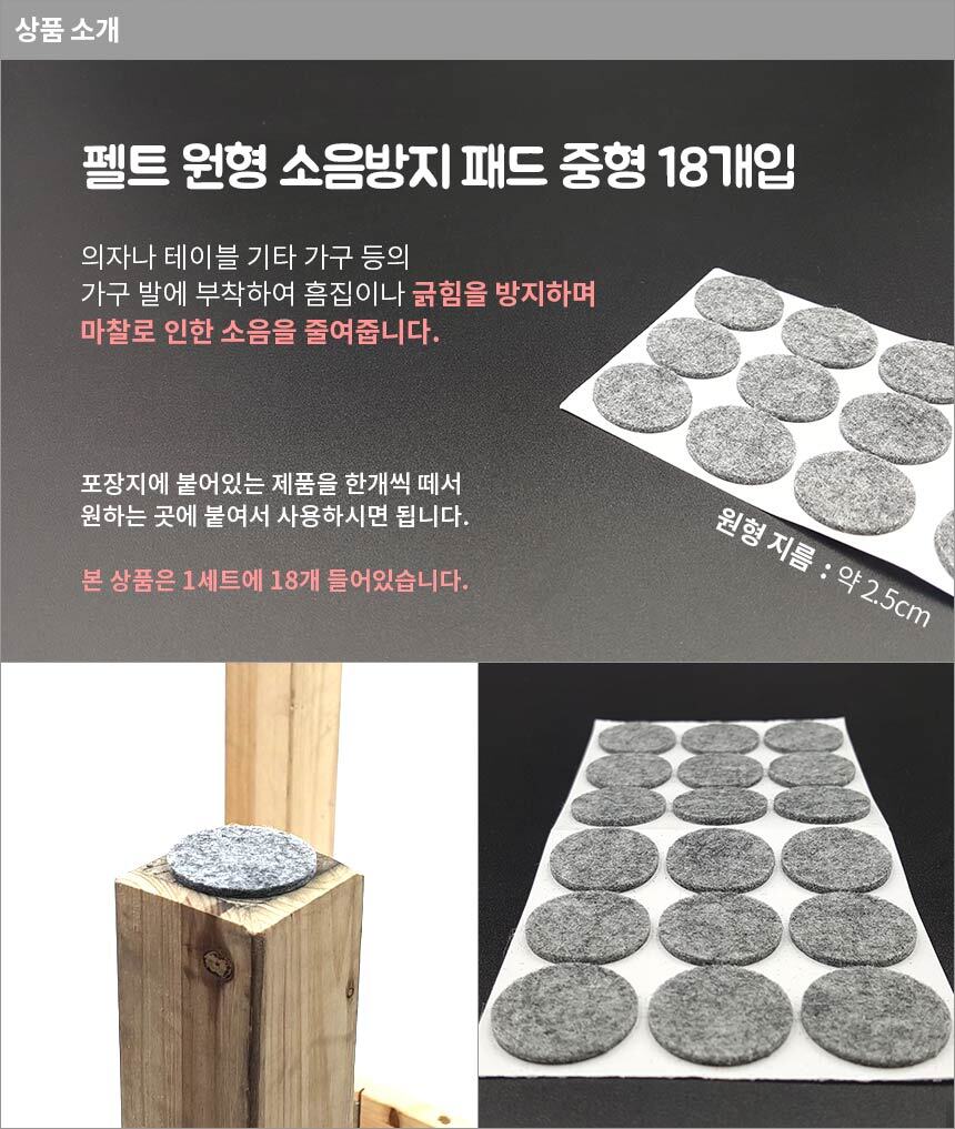 펠트 원형 소음방지 패드 중형 18개입