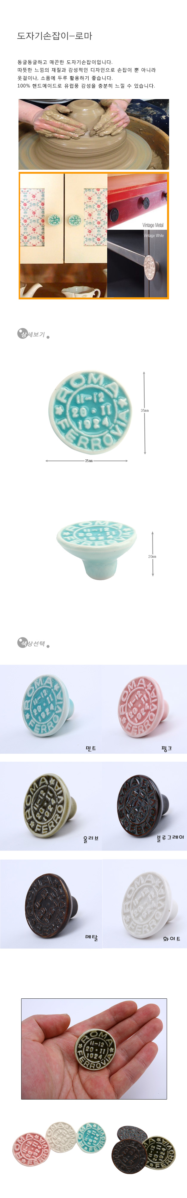 1구손잡이 도자기 로마 민트 가구손잡이 싱크대서랍장 이미지/