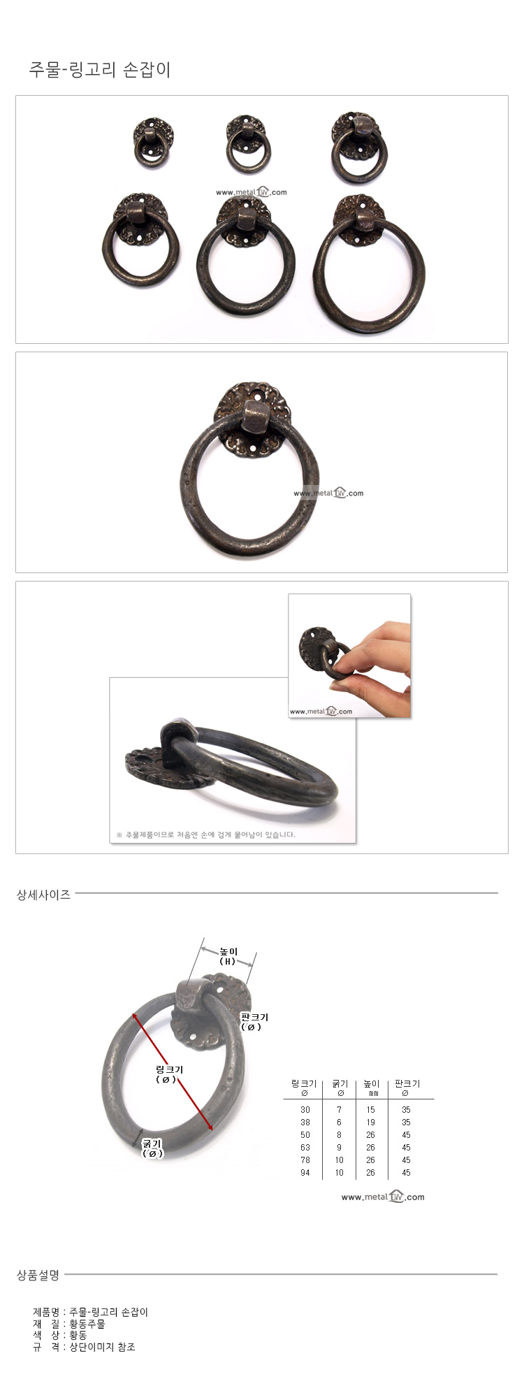 주물링고리 78mm 가구서랍장문고리 손잡이 문고리 이미지/