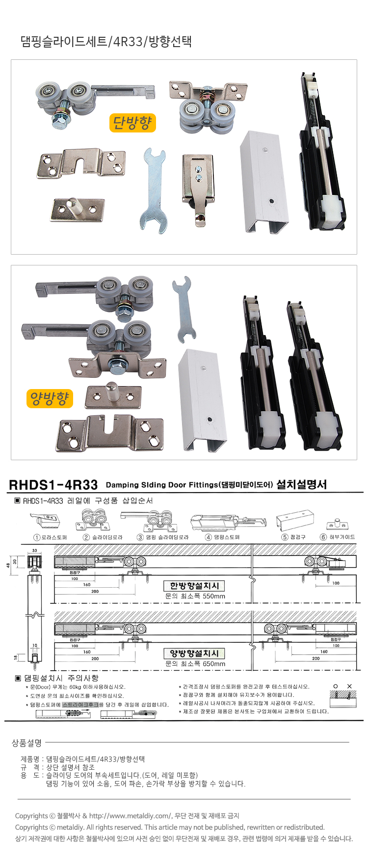 댐핑슬라이드세트 4R33 양방향 미닫이출입문창문틀슬