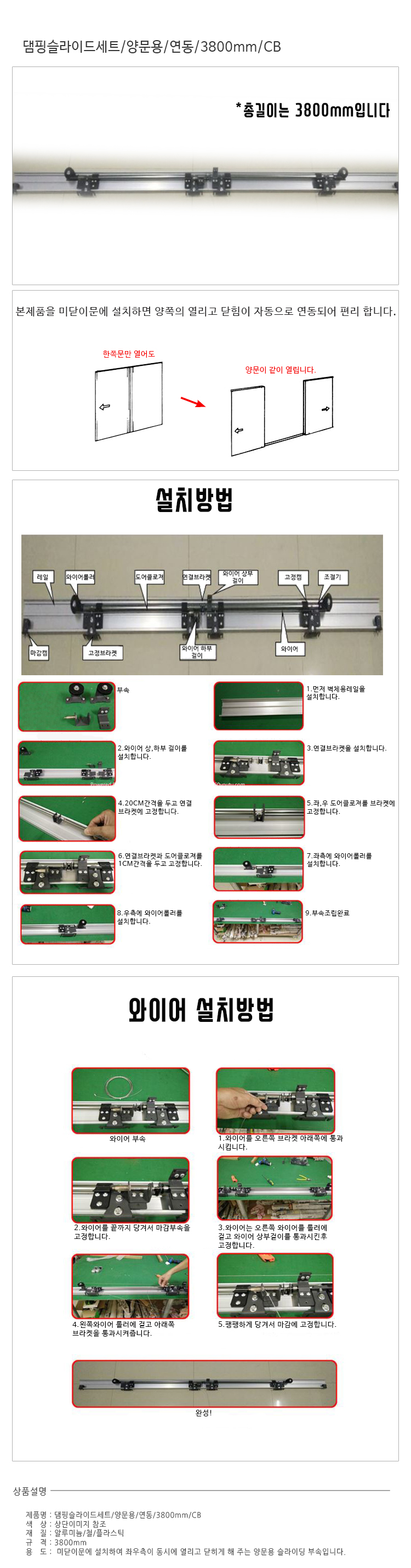 댐핑슬라이드세트 양문용 연동 3800mm CB 미닫이출입