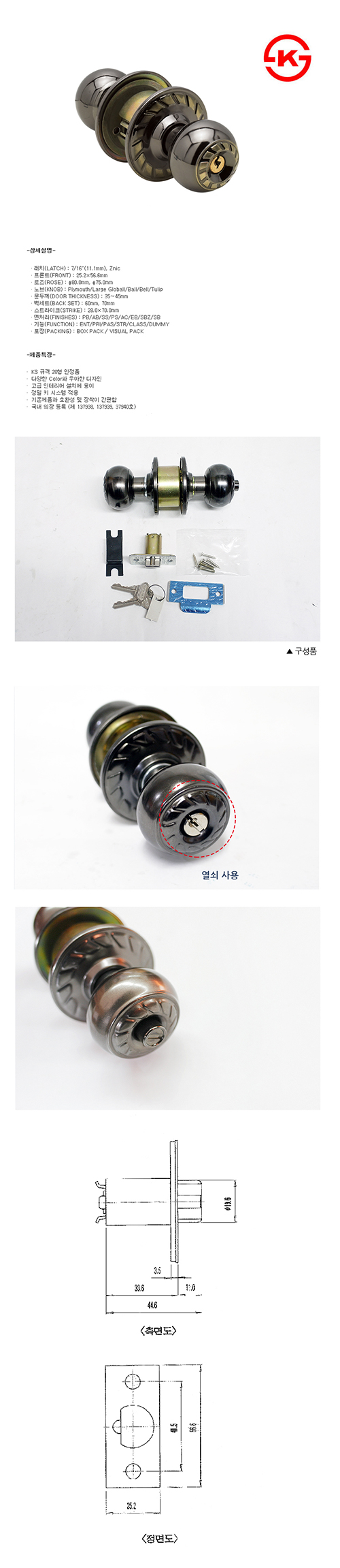 현대도어록 원통형 8300 AB 침실용 이미지/