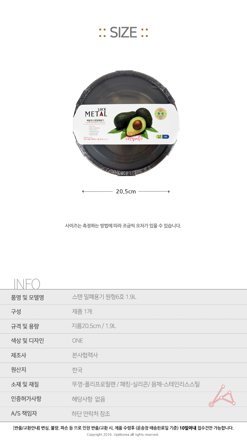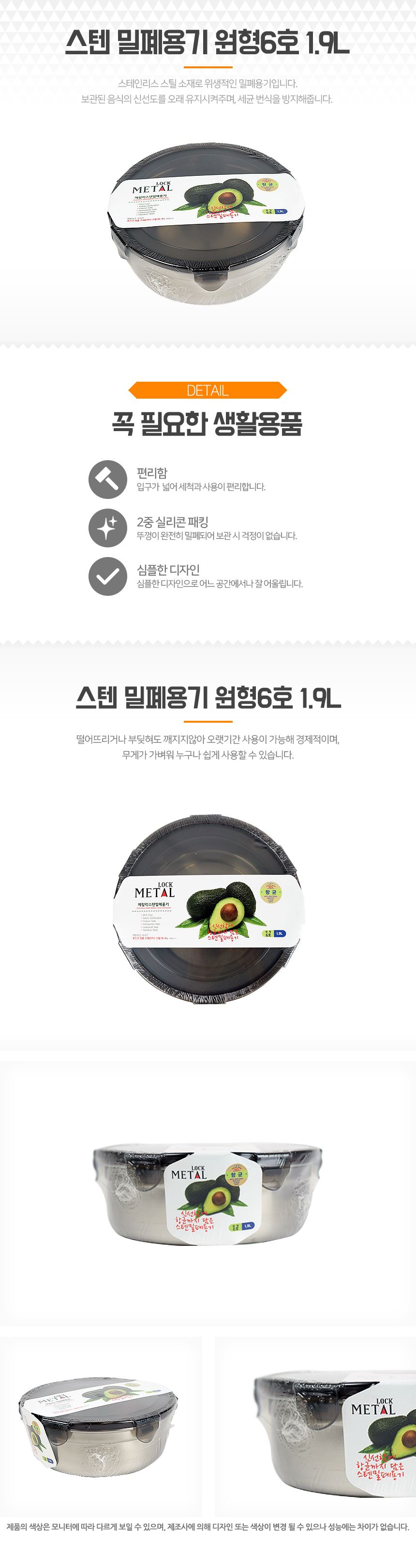 스텐 밀폐용기 원형6호 1.9L 이미지/