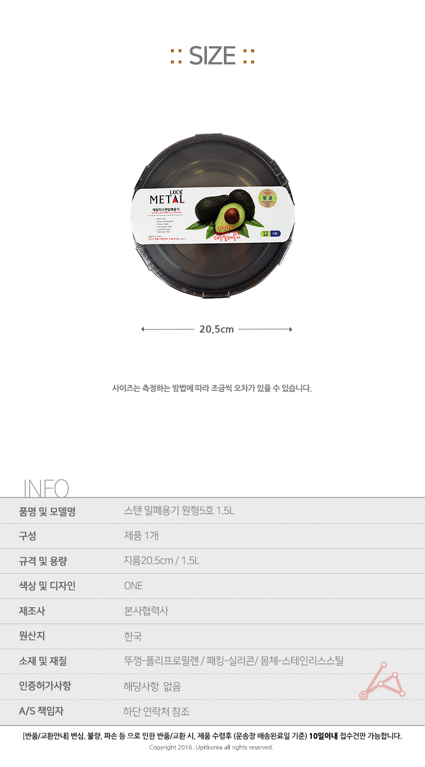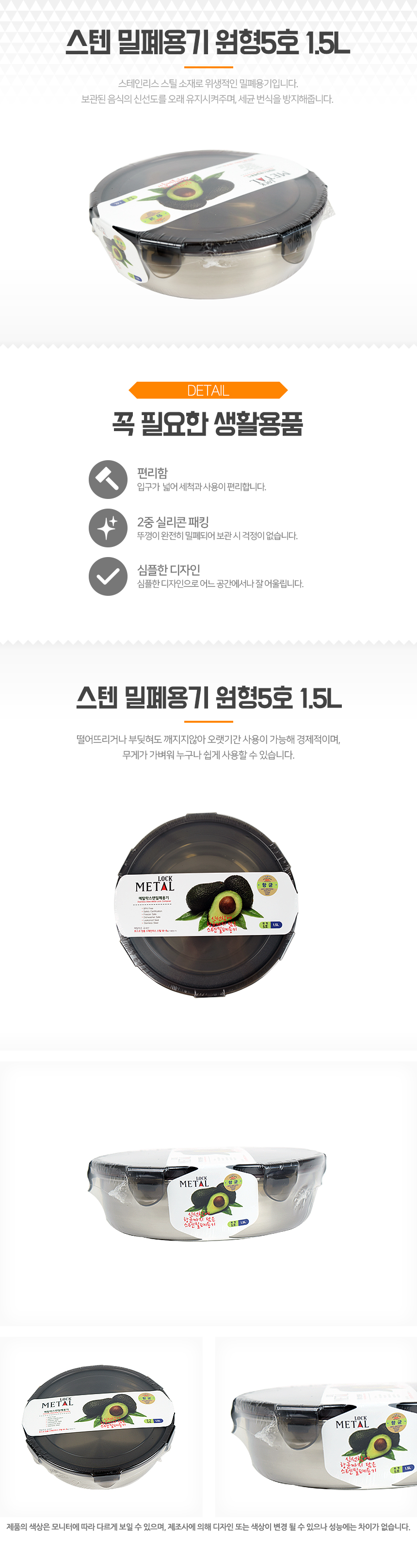 스텐 밀폐용기 원형5호 1.5L 이미지/