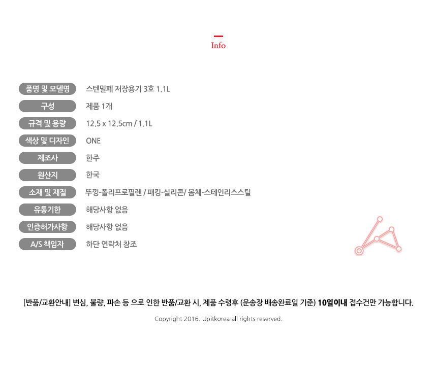 스텐밀폐 저장용기 3호 1.1L 이미지/