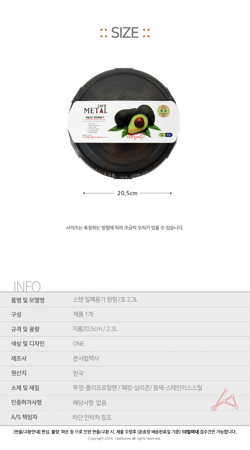 스텐 밀폐용기 원형7호 2.3L 이미지/