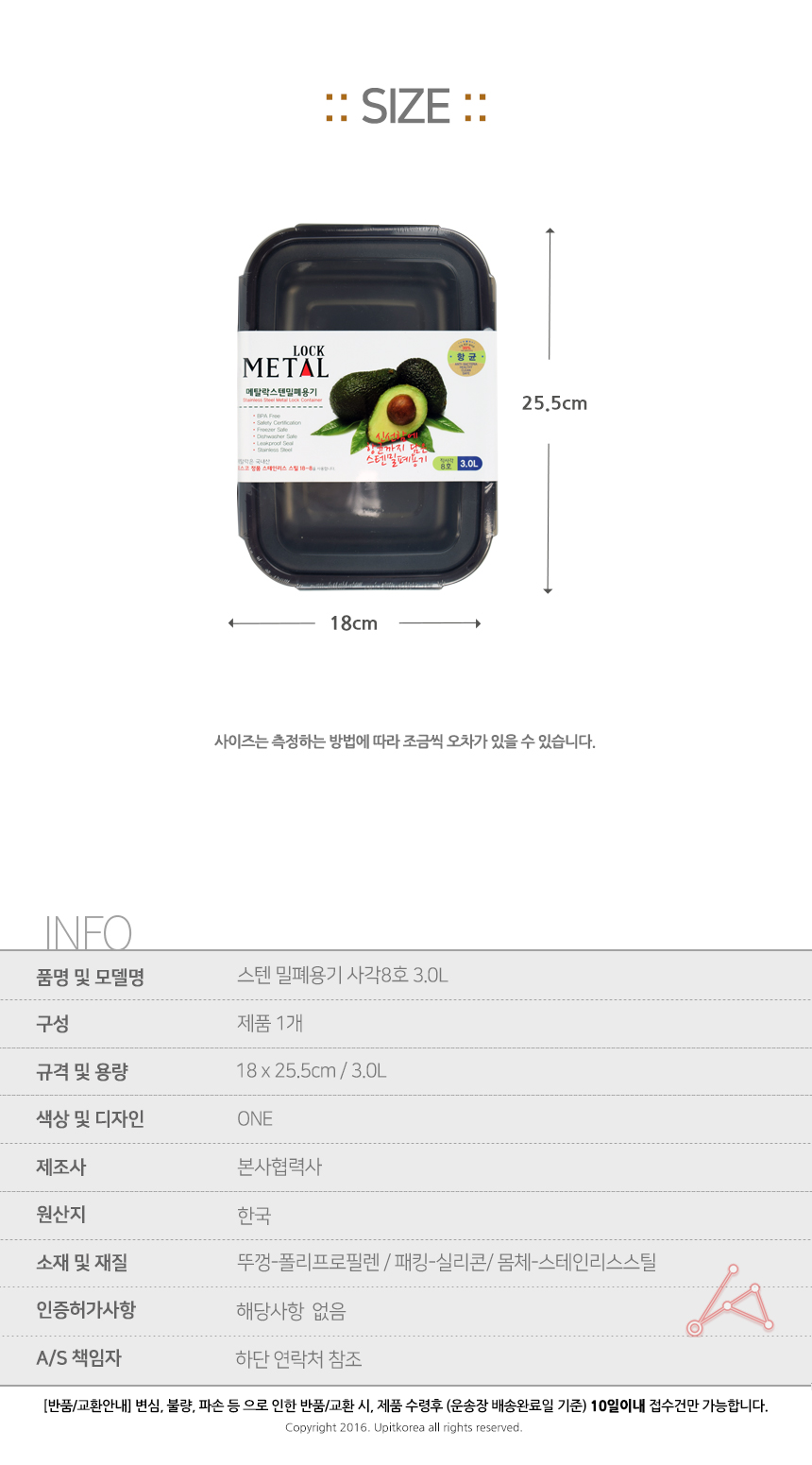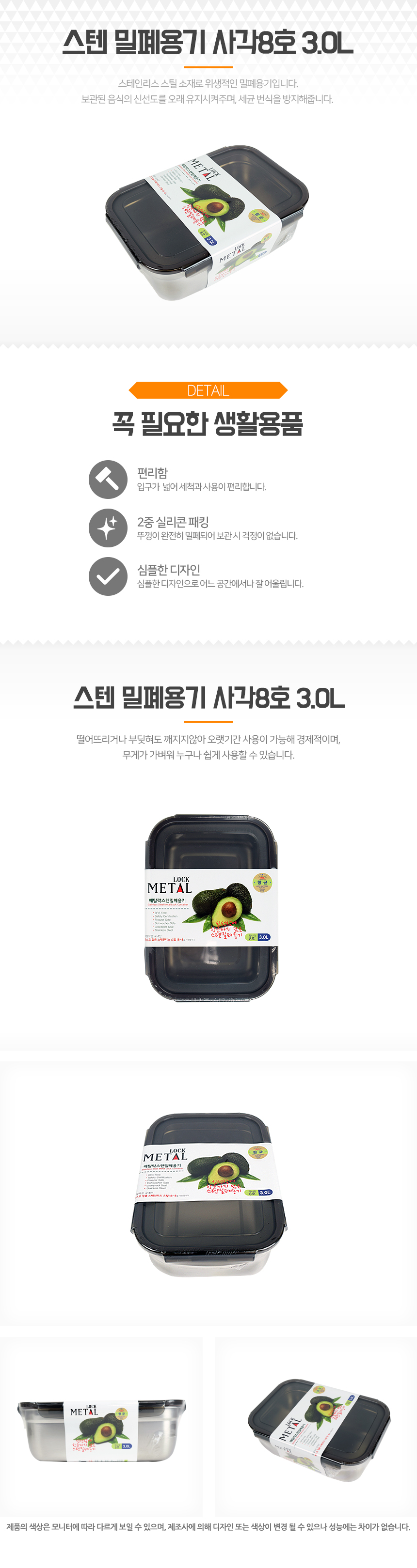 스텐 밀폐용기 사각8호 3.0L 이미지/