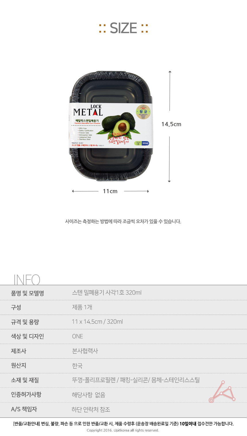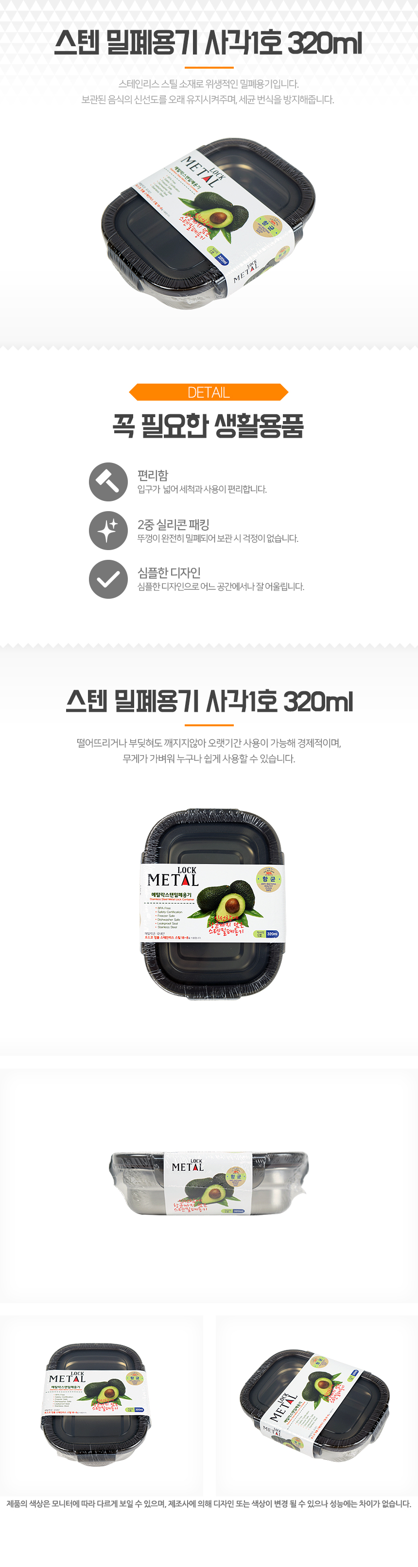 스텐 밀폐용기 사각1호 320ml 이미지/