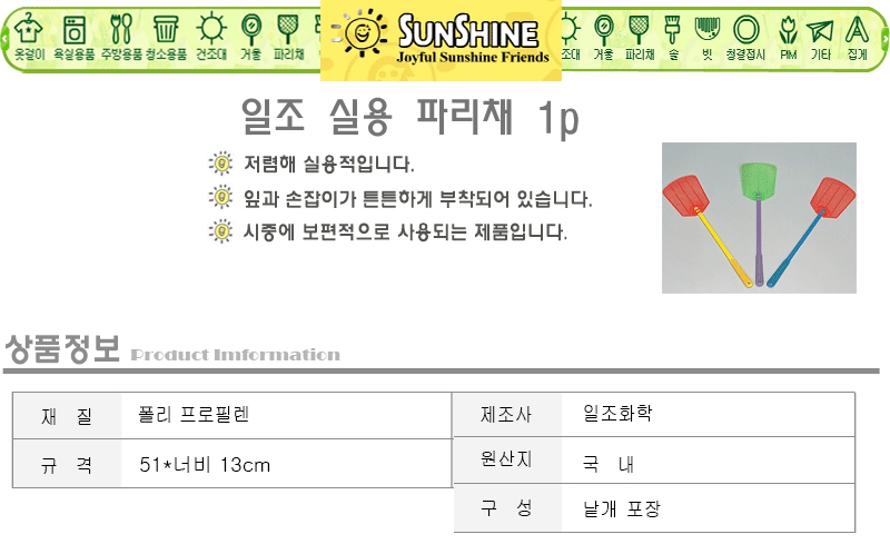 일조 실용 파리채 1p 예쁜파리채 모기파리채 대왕파리