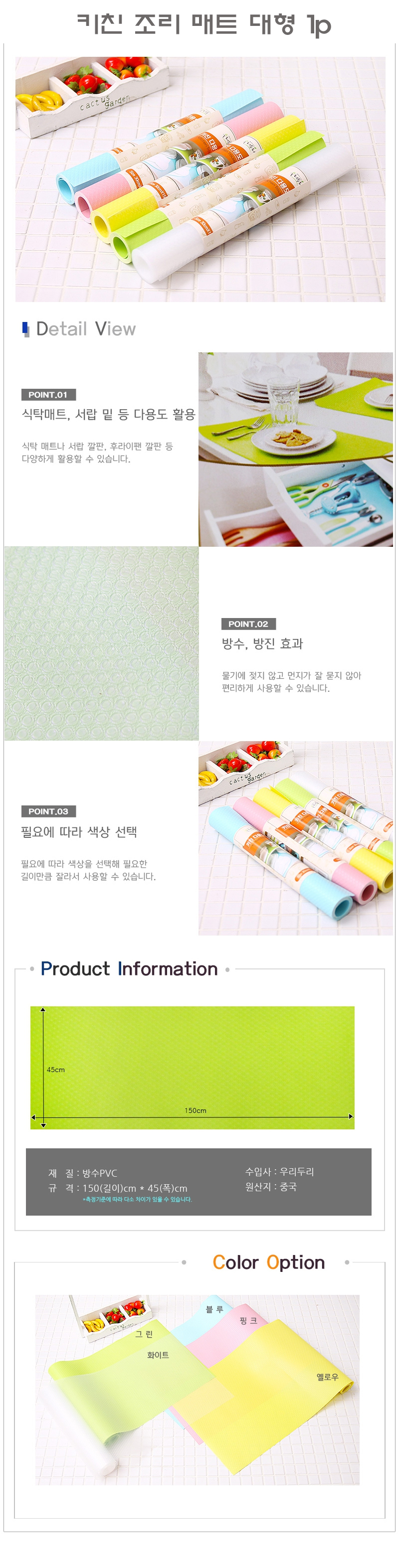 키친 조리 매트 대형 1p 주방 다용도 다목적 식탁 씽