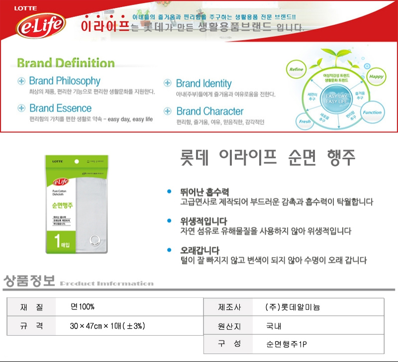 롯데 이라이프 순면 행주 면행주 고급행주 걸레 주방 이미지/