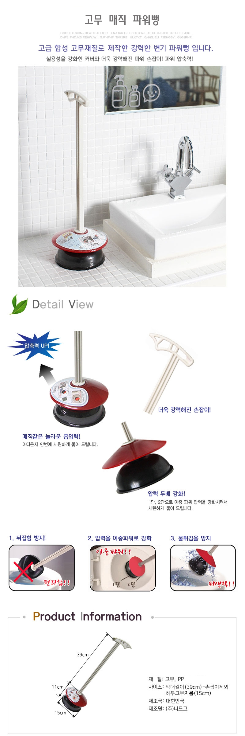 고무 매직 파워뻥 뚫어뻥 뚜러 화장실 변기 뚫어펑
