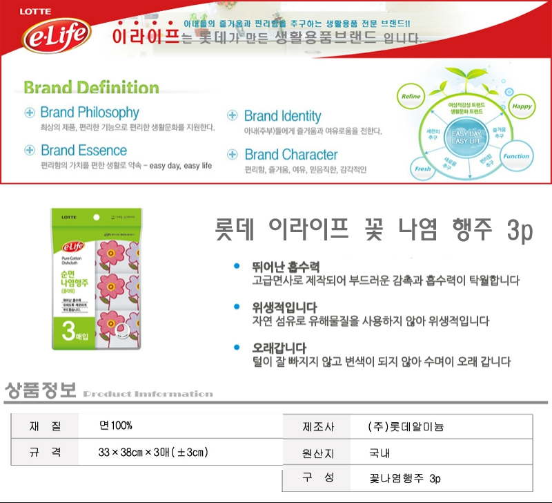 롯데 이라이프 꽃 나염 행주 3p 면행주 고급행주 걸레