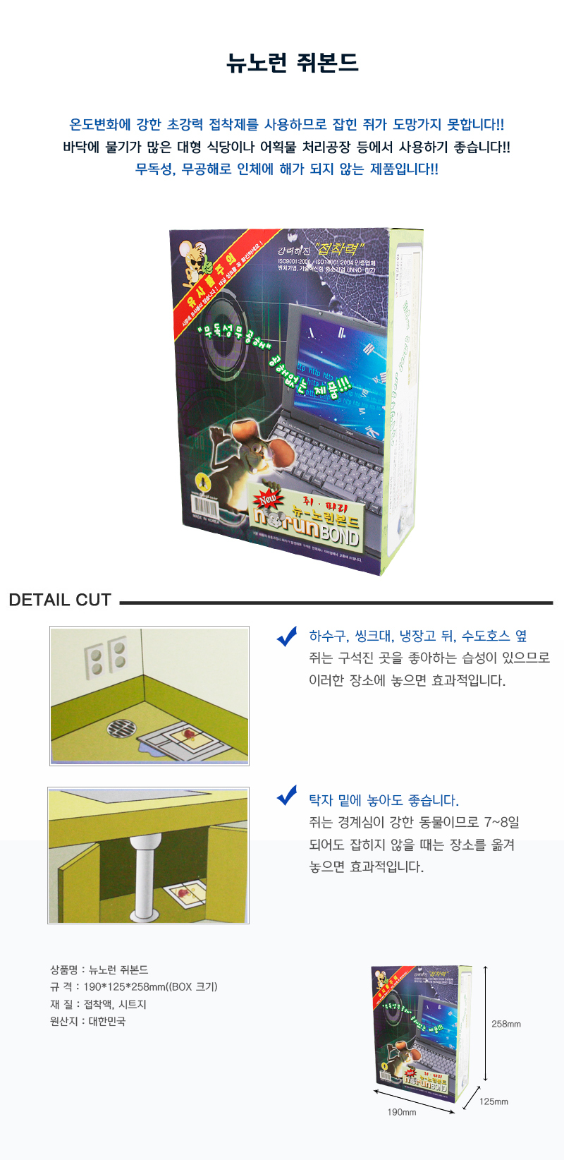 뉴 노런 쥐본드 20p 쥐끈끈이 쥐덫 바퀴벌레끈끈이 쥐 이미지/