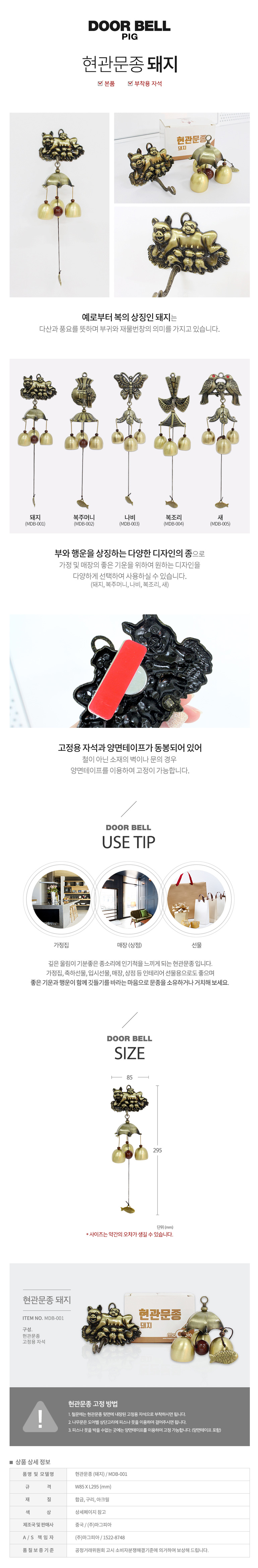 현관 문종 돼지 초인종 현관문종 문종