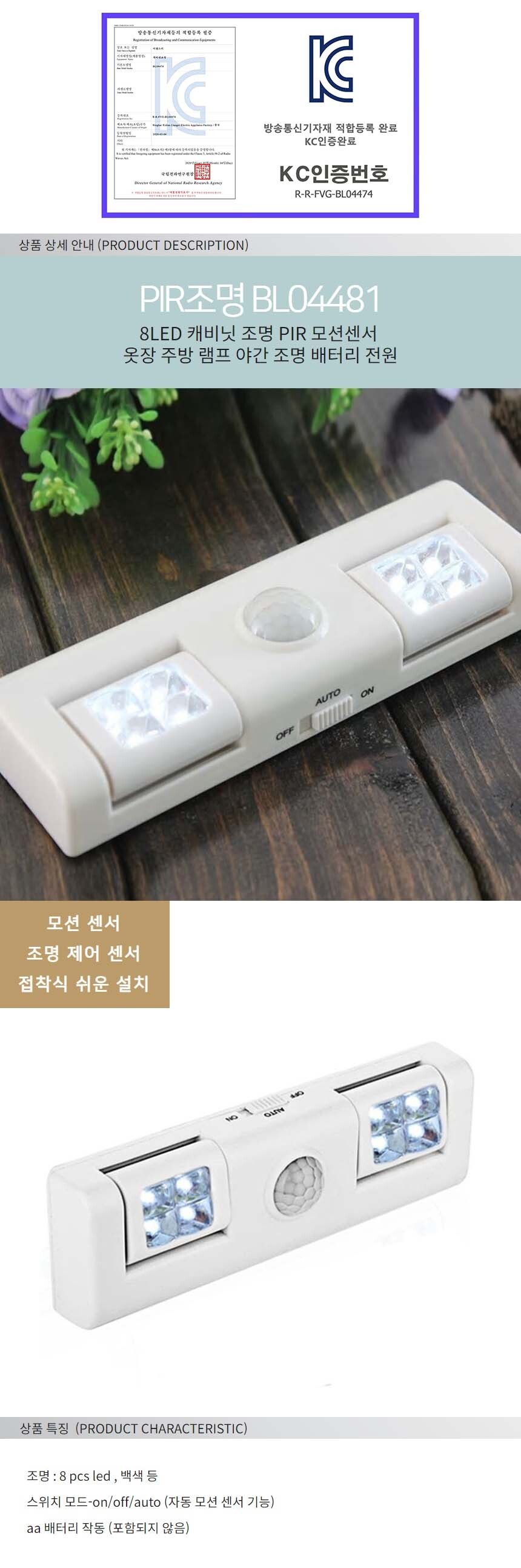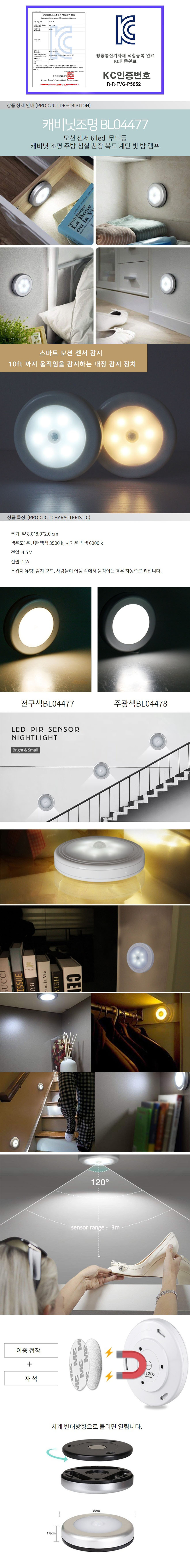 모션센서 led 무드등 주방 침실 씽크 복도 계단 조명