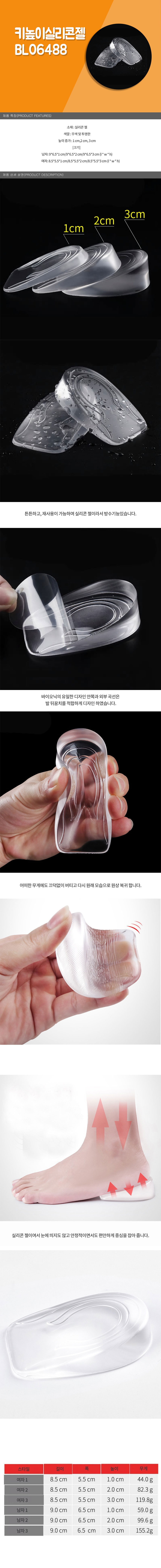 키높이 실리콘 젤 구두 패드 인솔 탄성 쿠션 아치 1cm 이미지/