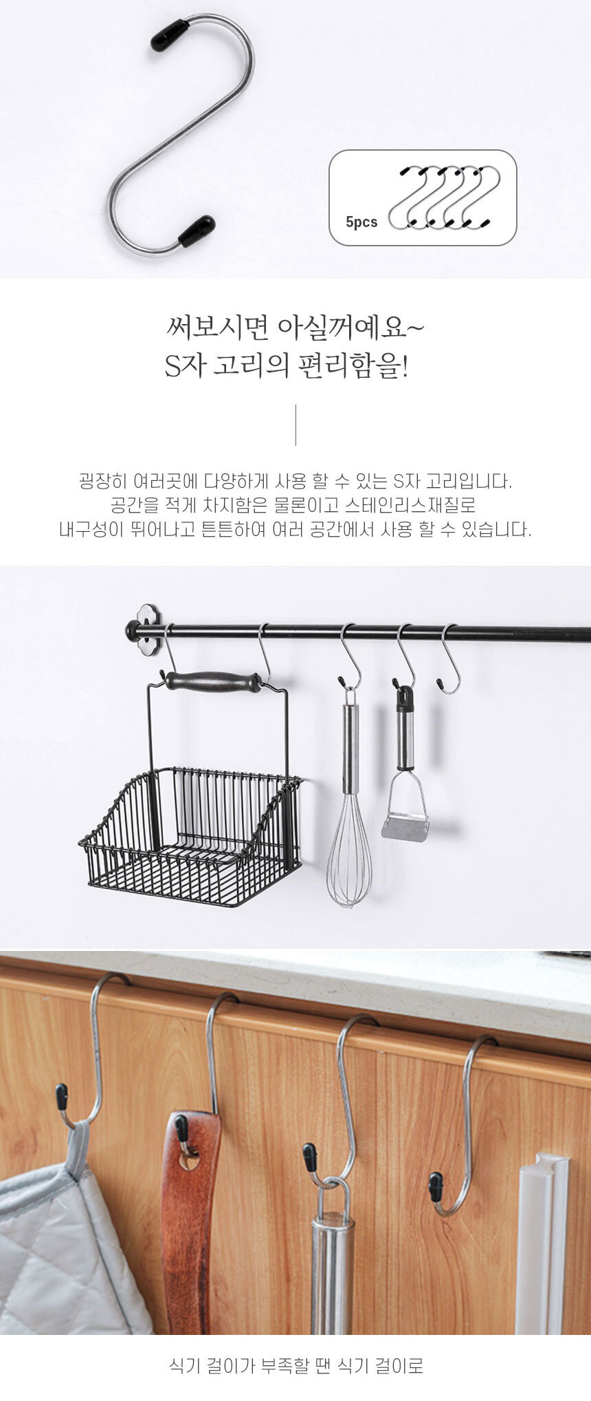 스텐 S고리 5개입 다용도걸이 고리 행거 도어훅